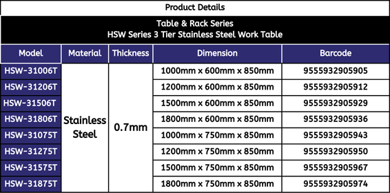 Table & Rack Series : HSW Worktable 3 Tier