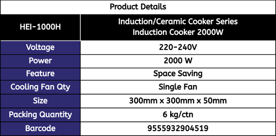Induction/Ceramic Cooker Series : HEI-2000H