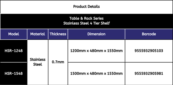 Table & Rack Series : HSR Stainless Steel 4 Tier Shelf