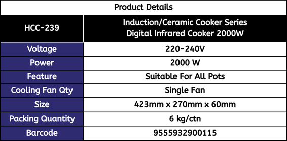 Induction/Ceramic Cooker Series : HCC-239